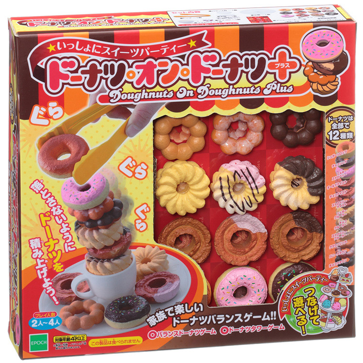 いいから直ぐにこれと同じ「本物のドーナツセット」を作って欲しいよね。こんなものでバランスゲームをやったら、とりあえず二つ目でぶちまける自信があるよ。ドーナツの種類もチョコレートが付いていたり、イチゴ味だったり、チョコ無しの茶色いのとか、色々種類があってどれも「食品サンプル」ばりにリアルなのがナウいよね。